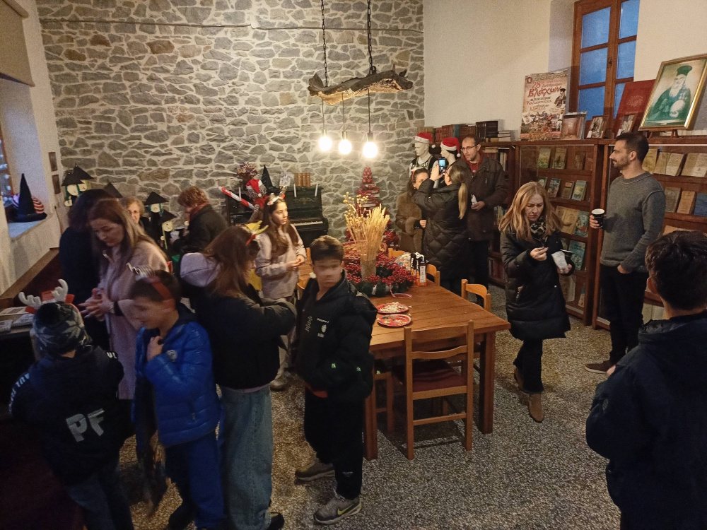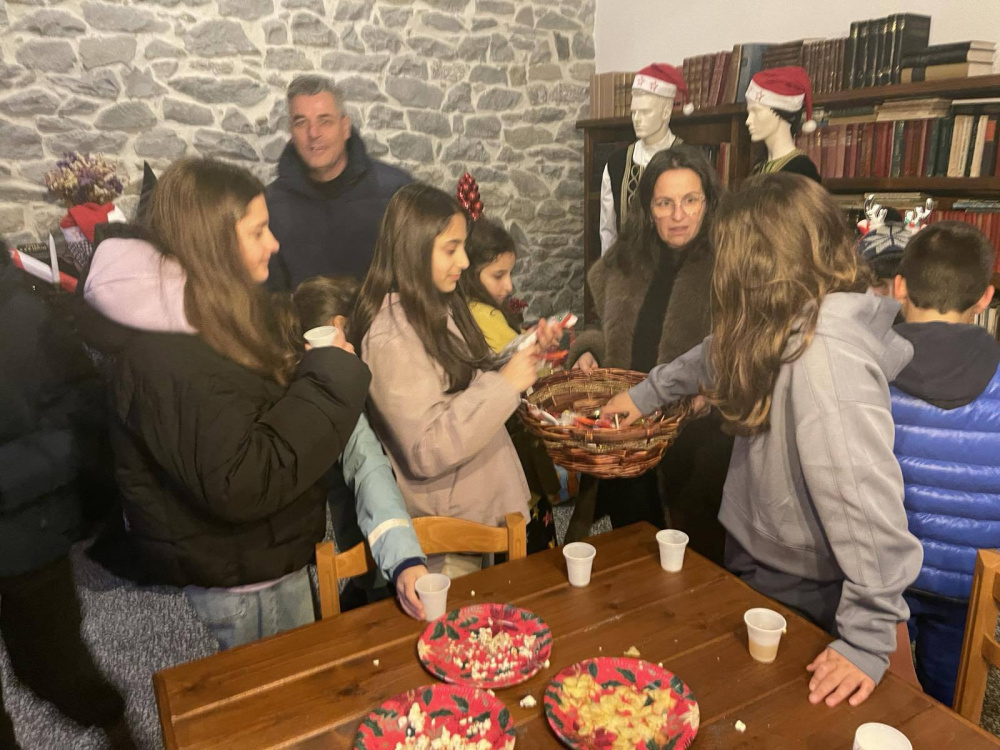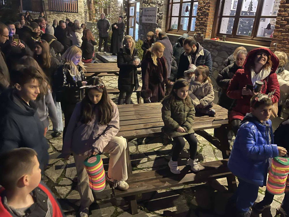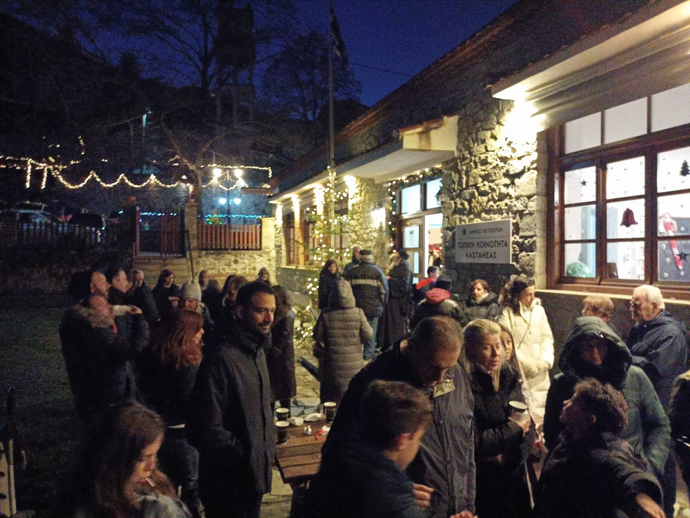 Συντροφιά μας ήταν το ζεστό κρασί και τα γιορτινά εδέσματα μια ευγενική προσφορά του Μορφωτικός Ευεργετικός Σύλλογος Καστανιάς που ζέσταναν τις καρδιές μας και ολοκλήρωσαν τη μαγική ατμόσφαιρα της βραδιάς.