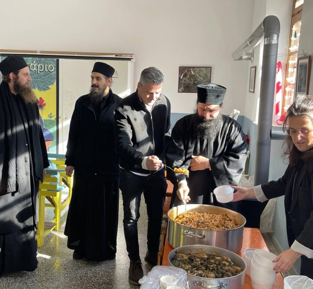 Ο Αρχιμανδρίτης πατέρας Θεοφάνης Ηγούμενος της Ιεράς Μονής Αγίου Νικολάου Αναπαυσά Μετεώρων μαζί με τον πατέρα Φώτιο και τον πατέρα Θεόδωρο μας προσέφεραν ένα γευστικό και πλούσιο μοναστηριακό γεύμα και μοιράστηκαν μαζί μας λόγους πνευματικής οικοδομής για τις Άγιες ημέρες των Χριστουγέννων .