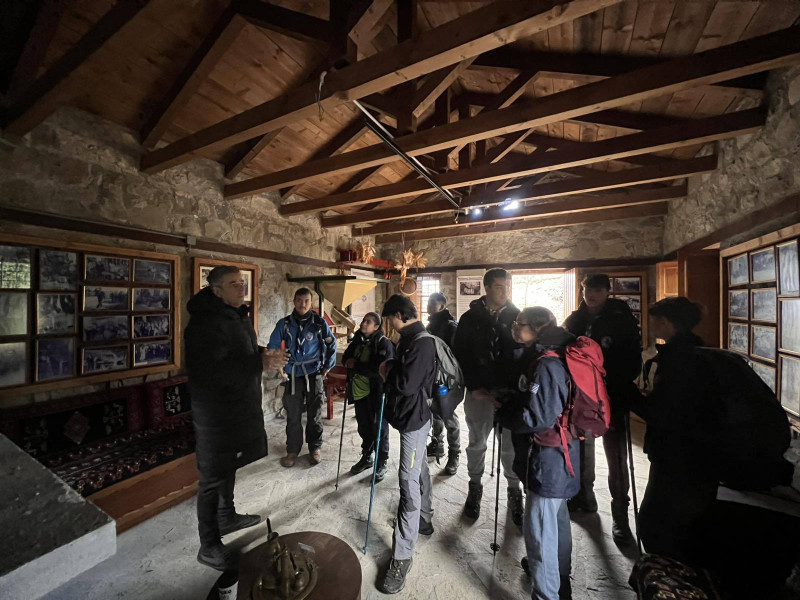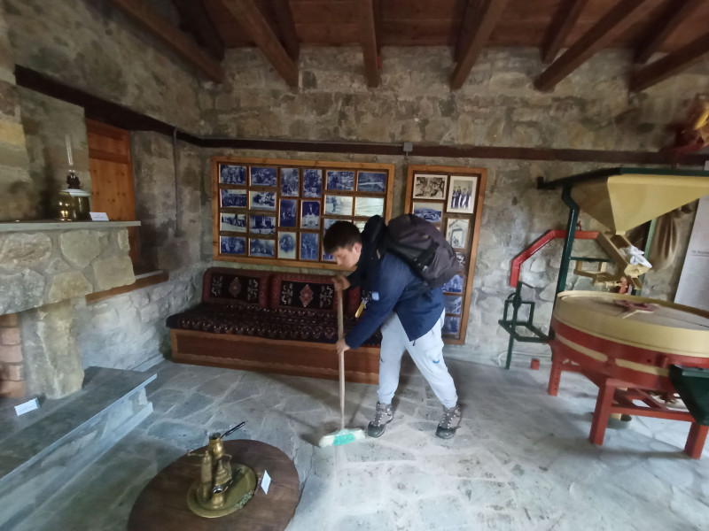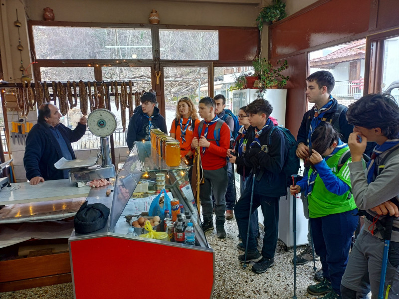 Αφού περιηγηθήκαμε σε όλα τα σημεία ενδιαφέροντος της Καστανιάς συζητώντας για την ιστορία του Μαρτυρικού μας Χωριού, επισκεφθήκαμε το παραδοσιακό παντοπωλείο του Στέργιου Μπαμπούκα. όπου εκεί μας έγινε επίδειξη για το πώς παρασκευάζονται τα χωριάτικα λουκάνικα δικής του παραγωγής.