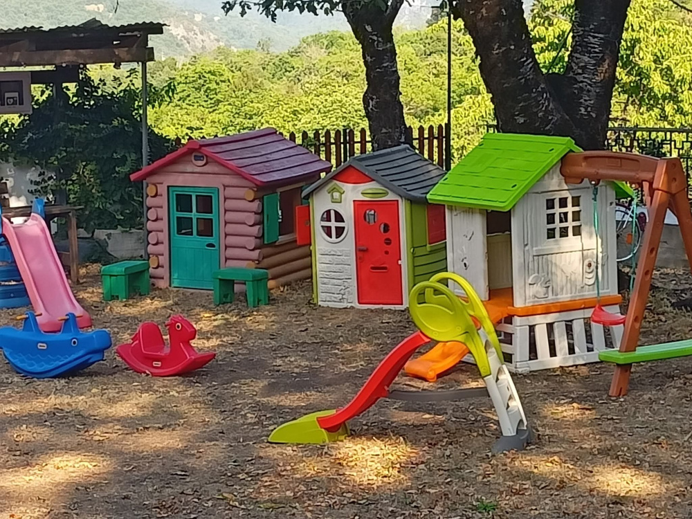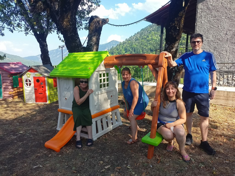 Το διώροφο σπιτάκι με την κούνια και την τσουλήθρα ήδη πήραν την θέση τους δίπλα στα παλαιότερα παιχνίδια και είναι έτοιμα για ατελείωτες ώρες διασκέδασης.