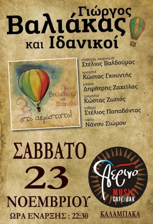 Στο ΑΕΡΙΝΟ έρχονται το Σάββατο 23 Νοεμβρίου το βράδυ, ο “Γιώργος Βαλιάκας και οι Ιδανικοί”.