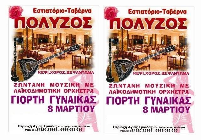 Έγινε, πλέον, «παράδοση» την «Μέρα της Γυναίκας» στο ΕΣΤΙΑΤΟΡΙΟ POLYZOS εδώ και 10 χρόνια μας προτιμάτε για την έξοδο σας.
