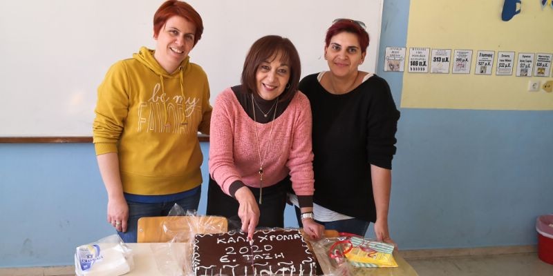 Στη βασιλόπιτα των εκπαιδευτικών το φλουρί βρήκε η κυρία Στέλλα Ψαρρή (δώρο ένα καλάθι με μέλι και παραδοσιακά προϊόντα της εταιρίας “Νέκταρ Μετεώρων” του Ανδρέα Αντωνίου).