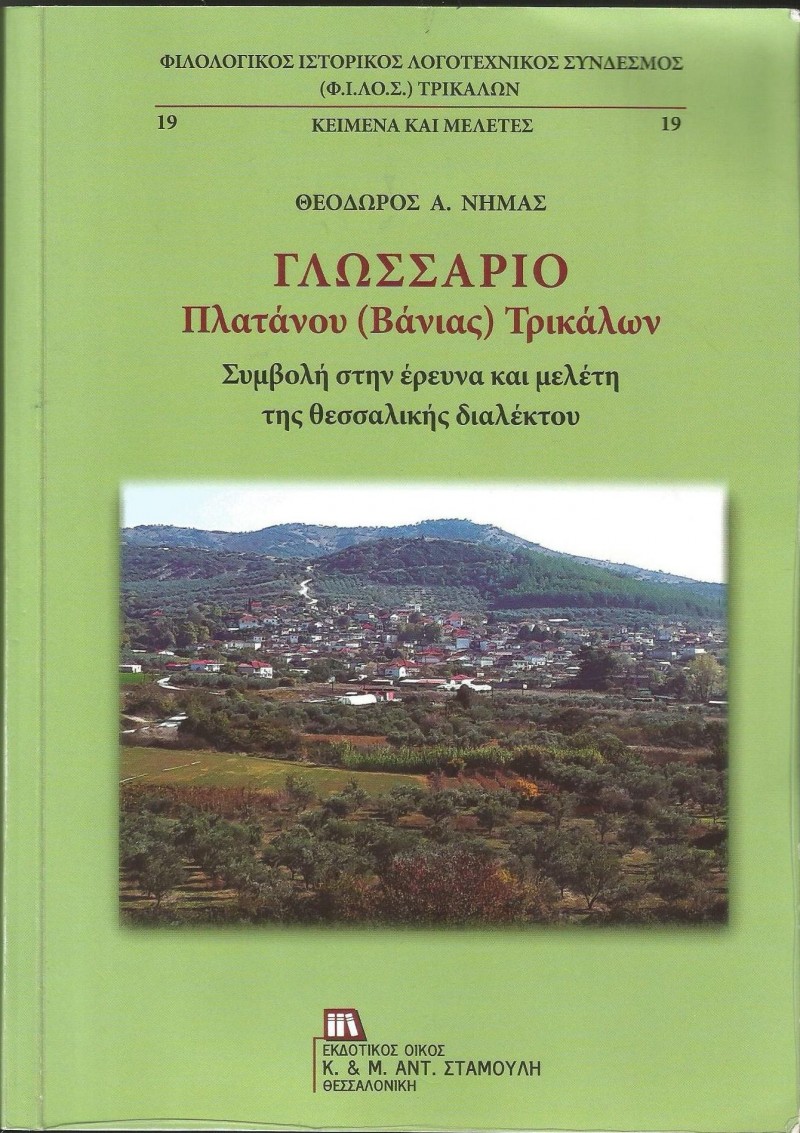 Πρόσφατα, από τον εκδοτικό οίκο Κ. και Μ. Αντ. Σταμούλη με έδρα την Θεσσαλονίκη, κυκλοφόρησε ένα καλαίσθητο βιβλίο από τον διαπρεπή φιλόλογο, συγγραφέα και Iστορικό Eρευνητή Θεόδωρο Α. Νημά, με τον τίτλο «Γλωσσάριο Πλατάνου (Βάνιας) Τρικάλων» και υπότιτλο, «Συμβολή στην έρευνα και μελέτη της θεσσαλικής διαλέκτου».