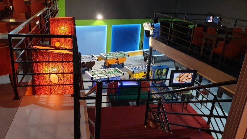 Φαγητό ( burgers, club σάντουιτς, βάφλες, κρέπες, hot dog, κ.α ) ποτά, μπύρες, καφέδες, χυμοί, κ.α. μπορούν να σας συνοδεύσουν στις “αναμετρήσεις” σας, στο μπιλιάρδο, στα βελάκια, στα ποδοσφαιράκια, στα παιχνίδια του playstation και των υπολογιστών αλλά και στην παρακολούθηση αγώνων σε Cosmote & Nova!