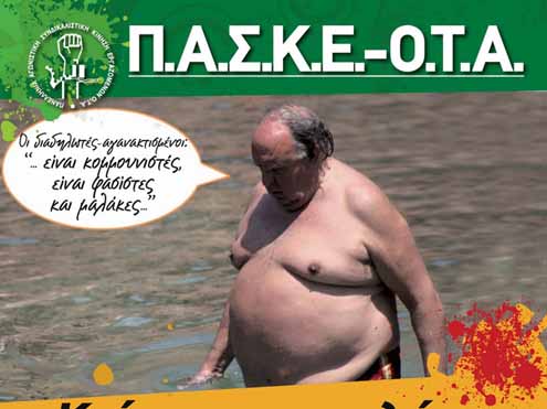 Σκληρή απάντηση της ΠΑΣΚΕ – ΟΤΑ στις δηλώσεις του Θεόδωρου Πάγκαλου με την αφίσα που κάνει το γύρο του διαδικτύου αλλά και τους πίνακες ανακοινώσεων των δήμων και των περιφερειών.