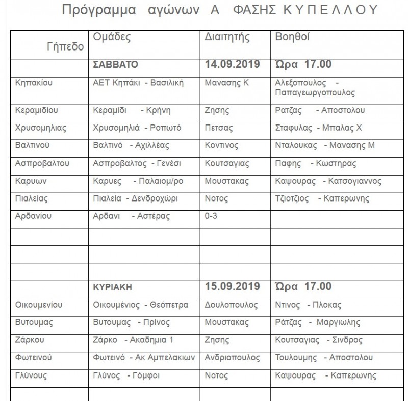 Από την ΕΠΣΤ ανακοινώθηκε το πρόγραμμα των αγώνων και οι διαιτητές τους για την α’ φάση του Κυπέλλου που διεξαχθούν στις 14 και 15 Σεπτεμβρίου.