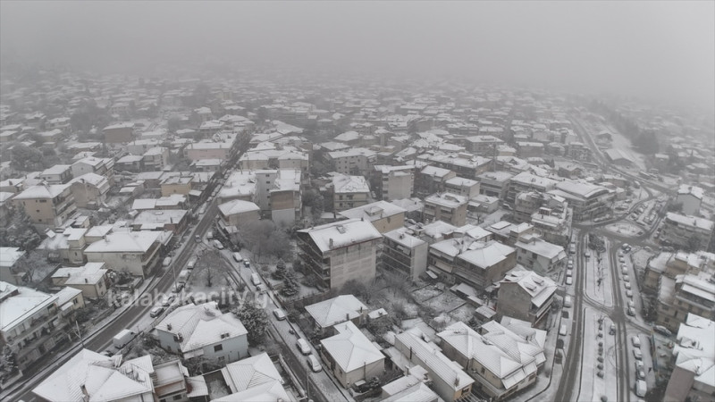 Στα λευκά είναι η Καλαμπάκα και όλος ο Δήμος Μετεώρων σήμερα, με την χιονόπτωση να συνεχίζεται και κατά διαστήματα να είναι έντονη.