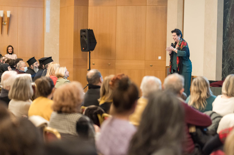 Η Πρόεδρος της KDK, κα Κατερίνα Δημουλά-Μέρριαμ, εμφανώς συγκινημένη, καλωσόρισε την κα Ευθυμίου και ευχαρίστησε το κοινό που παρευρέθηκε στην εκδήλωση.