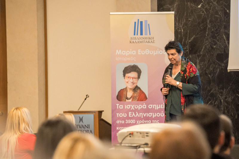 Η Βιβλιοθήκη Καλαμπάκας είχε την χαρά και την τιμή να φιλοξενήσει την Τρίτη 23 Ιανουαρίου τη διαπρεπή ιστορικό και συγγραφέα Μαρία Ευθυμίου. Η κα Ευθυμίου, αρχικά ξεναγήθηκε από τη διευθύντρια κ. Κατσιαμάνη στους χώρους της Βιβλιοθήκης και ενημερώθηκε για τα προγράμματα και τα έργο της. Στη συνέχεια, πραγματοποιήθηκε η ομιλία της με θέμα τα ισχυρά σημεία του ελληνισμού στα 3.500 χρόνια της καταγεγραμμένης ιστορίας του στο ξενοδοχείο Divani Meteora Hotel.