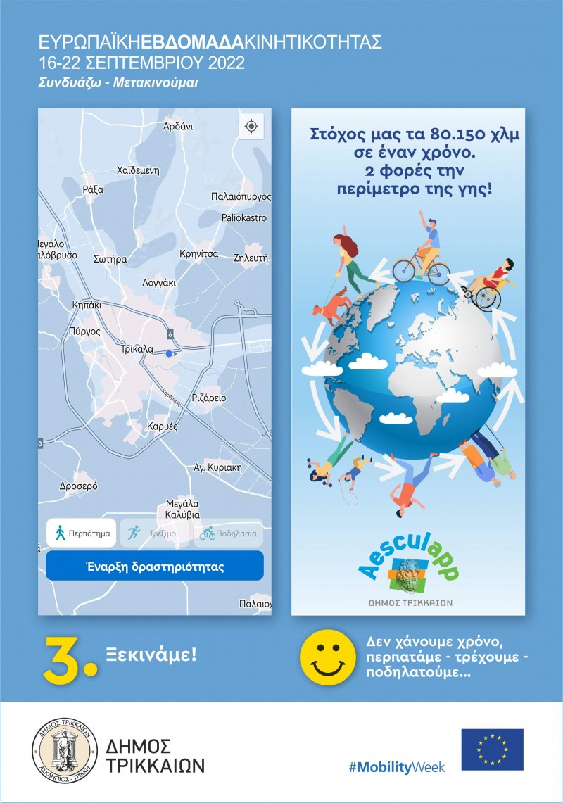 Το απόγευμα της τρίτης 20 Σεπτεμβρίου 2022, ακριβώς κάτω από το άγαλμα του Ασκληπιού στην ομώνυμη πεζογέφυρα των Τρικάλων, ο Δήμαρχος Τρικκαίων Δημήτρης Παπαστεργίου παρουσίασε την εφαρμογή. Και, όπως τόνισε, πρόκειται για “συνένωση δυνάμεων για καλό σκοπό, για την υγεία μας”. Εξάλλου, σημείωσε, “αν δεν μετρήσεις κάτι, δεν μπορείς να το βελτιώσεις” και στο πλαίσιο αυτό, μετρώνται τα χιλιόμετρα που θα κάνουν οι τρικαλινοί/ες με το ποδήλατο ή πεζή. Επιπλέον, κάθε πολίτης που θα “κατεβάζει” και θα χρησιμοποιεί την εφαρμογή, όχι μόνο θα βλέπει και θα ξέρει την καθημερινή του πρόοδο (σε τρέξιμο, απλό περπάτημα και ποδηλασία), αλλά και θα διαπιστώνει πόσες θερμίδες ξόδεψε. Μάλιστα, όπως επεσήμανε ο κ. Παπαστεργίου, στόχος είναι “του χρόνου τέτοια ημέρα, να έχουμε καταγράψει 80.150 χλμ., δηλαδή δύο φορές τον γύρο της γης!”.