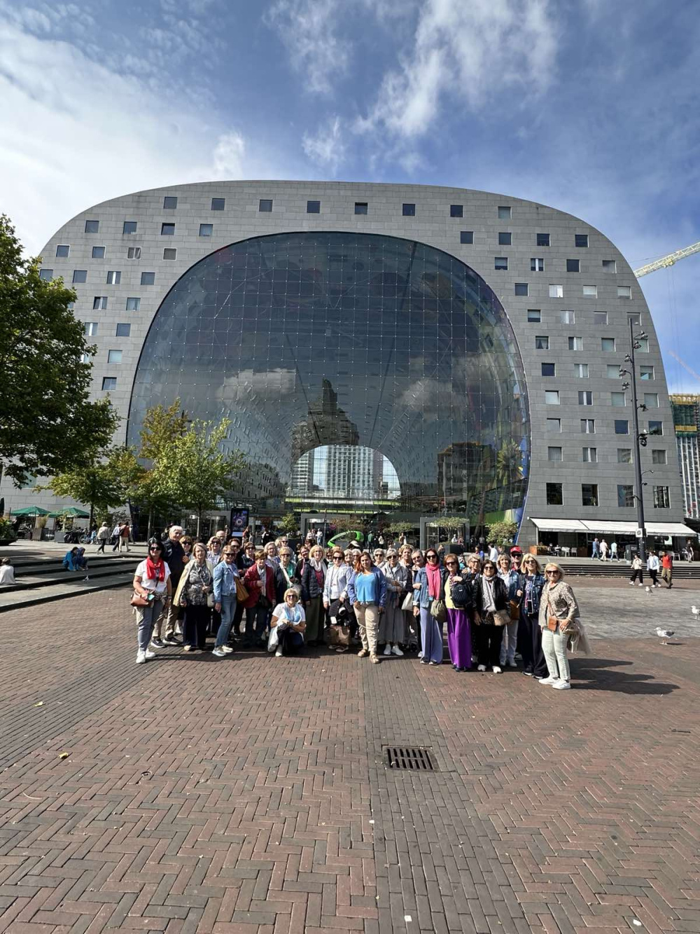 Ρότερνταμ , Ντέλφτ , Χάγη . Μία μονοήμερη εκδρομή σ’ αυτές τις τρεις πόλεις που είναι πολύ κοντά η μία από την άλλη. Το Ρότερνταμ το μεγαλύτερο λιμάνι της Ευρώπης, που ισοπεδώθηκε από τους βομβαρδισμούς κατά τον Β΄Παγκόσμιο Πόλεμο και όμως έγινε σύμβολο ελπίδας και δημιουργικότητας. Επισκεφτήκαμε τις κυβοειδείς κατοικίες. Σπίτια που έχουν σχήμα κύβου γερμένου κατά 45ο, σχεδιασμένα από τον αρχιτέκτονα PietBlom, δημιουργώντας ένα φουτουριστικό «χωριό» μέσα στην πόλη. Περπατήσαμε στην κλειστή αγορά του Ρότερνταμ σε σχήμα τόξου που καλύπτεται από μια τεράστια ψηφιακή τοιχογραφία που απεικονίζει φρούτα λουλούδια και έντομα. Εντυπωσιακό !!!!!!