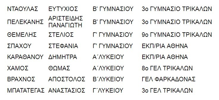 Τους ευχόμαστε καλή επιτυχία και στην επόμενη φάση του διαγωνισμού, την 37η Εθνική Μαθηματική Ολυμπιάδα «Ο ΑΡΧΙΜΗΔΗΣ», που θα διεξαχθεί στην Αθήνα, το Σάββατο 22 Φεβρουαρίου 2020, στο κτίριο του Νέου Χημείου, οδός Ναυαρίνου 13Α, μεταξύ Μαυρομιχάλη και Χαρ. Τρικούπη στις 09.00 – 12.00 π.μ..