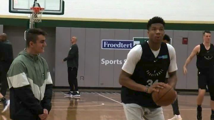 «Είναι ένα 15χρονο παιδί που περνά δύσκολα. Ήταν σημαντικό που έκανε την ευχή να με συναντήσει. Ελπίζω να του φτιάξαμε τη μέρα, να πέρασε καλά μαζί μας. Είναι καλός σουτέρ, όπως είδα. Είναι το λιγότερο που μπορώ να κάνω», πρόσθεσε από την πλευρά του ο Γιάννης Αντετοκούνμπο.