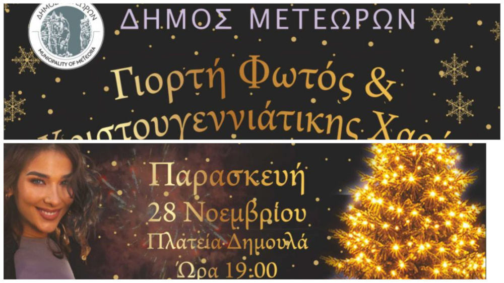 Ο Δήμος Μετεώρων καλεί μικρούς και μεγάλους στη λαμπερή έναρξη της εορταστικής περιόδου με μια μαγευτική Γιορτή Φωτός & Χριστουγεννιάτικης Χαράς, που θα πραγματοποιηθεί την Παρασκευή 28 Νοεμβρίου, στις 19:00, στην Πλατεία Δημουλά. Σε μια εποχή όπου οι καρδιές γεμίζουν ελπίδα και προσμονή, ερχόμαστε όλοι μαζί να μοιραστούμε το φως, τη χαρά και τη μαγεία των Χριστουγέννων.