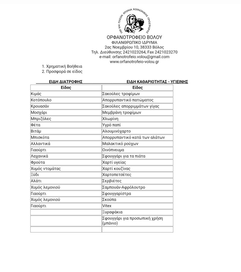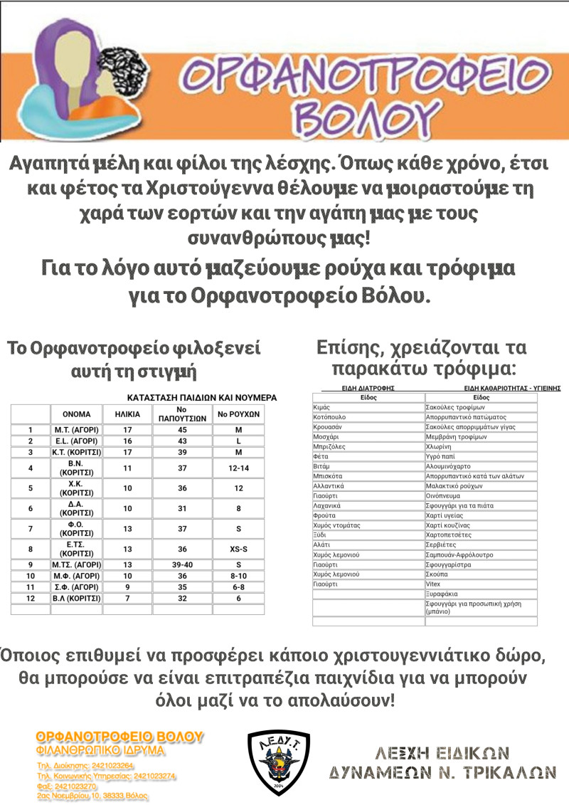 Για το λόγο αυτό μαζεύουμε ρούχα και τρόφιμα για το ορφανοτροφείο Βόλου