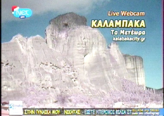 Εδώ και δυο χρόνια, αρκετά συχνά, η δημοφιλής εκπομπή της ΝΕΤ “Μένουμε Ελλάδα” προβάλει εικόνες των Μετεώρων και μέρος της Καλαμπάκας από τις δυο κάμερες που έχουμε εγκαταστήσει σε σημεία της πόλης.