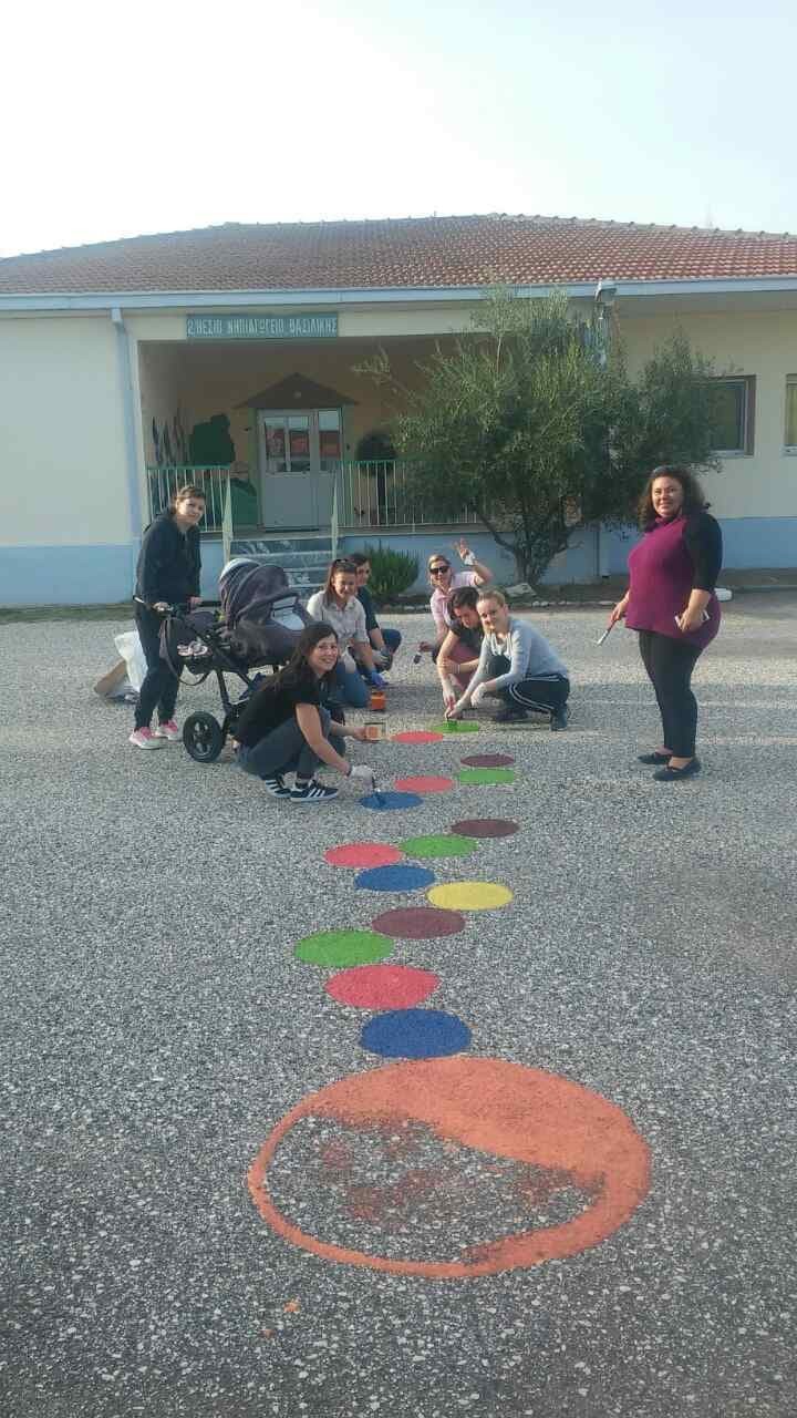 Ο λόγος ήταν η δημιουργία επιδαπέδιων παιχνιδιών στην αυλή του νηπιαγωγείου όπου τα παιδιά θα παίζουν διάφορα παιχνίδια για να περνούν ευχάριστα την ώρα τους.
