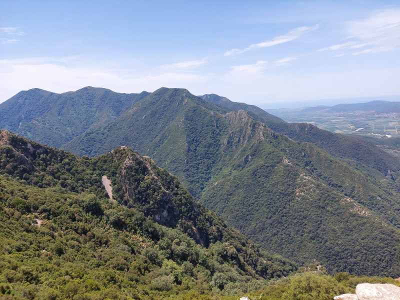 Κατεβαίνοντας μπήκαμε σε μονοπάτι, πετρώδες, με κάποια σκαλιά να σώζονται ακόμη, η βλάστηση χαμηλή και δενδρώδης από βελανιδιές και πολλά αρωματικά βότανα.