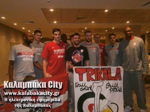 Η ομάδα του Ολυμπιακού έτυχε μεγάλης αποδροχής από τους φιλάθλους οι οποίοι “έμαθαν” την άφιξη της αγαπημένης τους ομάδας στο ξενοδοχείο της Καλαμπάκας.