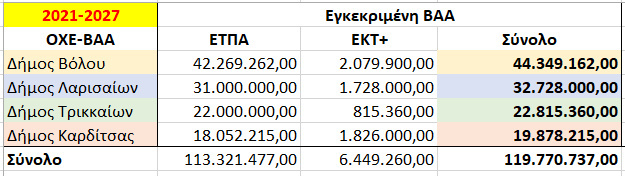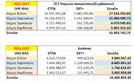 Ο συνολικός προϋπολογισμός των ΣΒΑΑ των 4 πρωτευουσών των ΠΕ Θεσσαλίας