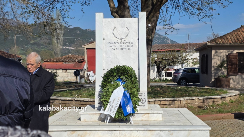 Στον Ιερό Ναό Αγίου Γεωργίου Περιστέρας Καλαμπάκας πραγματοποιήθηκε σήμερα η Θεία Λειτουργία και στη συνέχεια η στην πλατεία του χωριού, στο μνημείο των πεσόντων, επιμνημόσυνη δέηση για τους πεσόντες του χωρίου από τους Γερμανούς την 2α Απριλίου 1944.