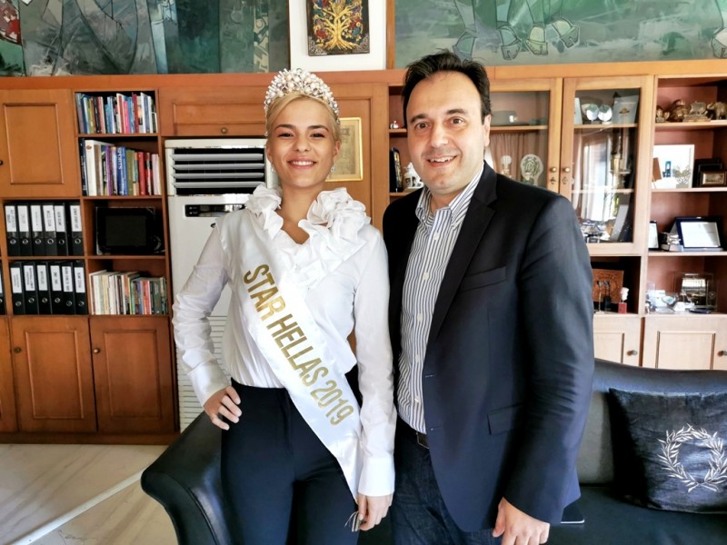 Η Σταρ Ελλάς 2019 Ραφαέλα Πλαστήρα, με το στέμμα της νικήτριας επισκέφθηκε τον Δήμαρχο Τρικκαίων.