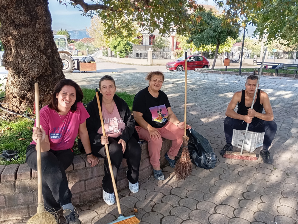 Με μεράκι και διάθεση προσφοράς καθάρισαν την πλατεία από ξερά φύλλα και διάφορα αντικείμενα, ώστε ο χώρος να είναι περιποιημένος και έτοιμος να υποδεχθεί τους εορτασμούς της ημέρας.