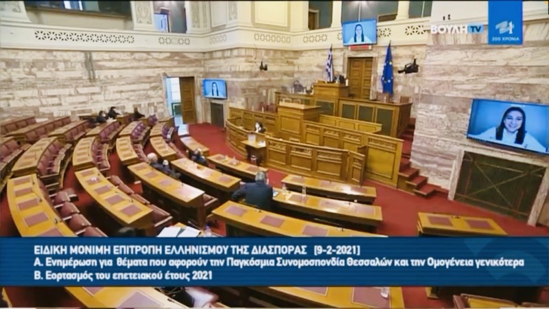 Η Παγκόσμια Συνομοσπονδία Θεσσαλών ήταν προσκεκλημένη από τον πρόεδρο της Ειδικής Μόνιμης Επιτροπής του Ελληνισμού της Διασποράς κ. Σάββα Αναστασιάδη, στην πρώτη συνεδρίαση του έτους 2021, η οποία έλαβε χώρα την Τρίτη 09 Φεβρουαρίου 2021, παγκόσμια ημέρα εορτασμού της ελληνικής γλώσσας. Η συνεδρίαση που πραγματοποιήθηκε μέσω τηλεδιάσκεψης είχε ως θεματολογία την ενημέρωση για τα θέματα που αφορούν την Παγκόσμια Συνομοσπονδία Θεσσαλών και την Ομογένεια γενικότερα καθώς και τον εορτασμό του επετειακού έτους 2021.
