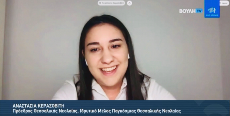 Στη συνεδρίαση πήρε μέρος και η Πρόεδρος της Θεσσαλικής Νεολαίας Ευρώπης και ιδρυτικό μέλος της Παγκόσμιας Θεσσαλικής Νεολαίας κ. Αναστασία Κερασοβίτη. Η κ. Κερασοβίτη αναφέρθηκε στους προβληματισμούς, στις δράσεις και στα όνειρα της Θεσσαλικής νεολαίας. Συγκεκριμένα είπε: