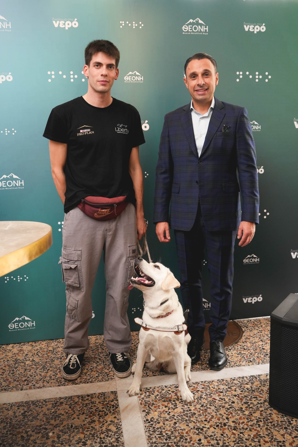 Δημήτρης Τσέλιος, Πρόεδρος, Διευθύνων Σύμβουλος και βασικός μέτοχος της ΘΕΟΝΗ με την Θεόνη της ΑΜΚΕ Liberty Dogs που εκπαιδεύεται ως σκύλος – οδηγός τυφλών