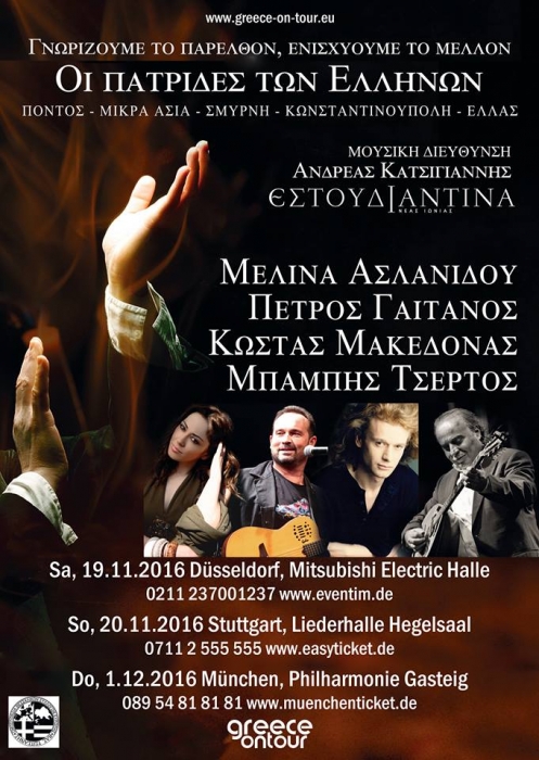 Η Ομοσπονδία Θεσσαλικών Συλλόγων Ευρώπης είναι χορηγός επικοινωνίας αυτής της εκδήλωσης. Παραστάσεις: Ντύσσελντορφ (19.11.2016), Στουτγάρδη (20.11.2016) και Μόναχο (1.12.2016).