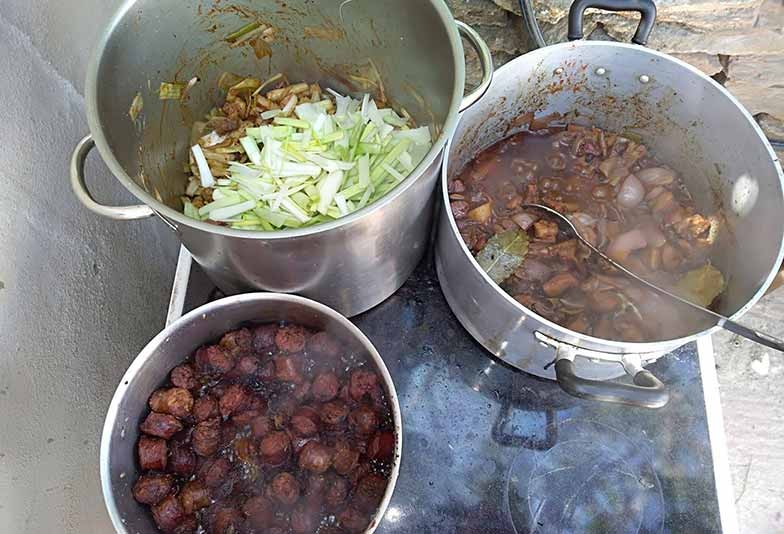 Οι μυρωδιές πλημμυρίζουν τον αέρα, τα ποτήρια γεμίζουν με ντόπιο κρασί και τσίπουρο η πόντς και το τσιμπολόγημα ξεκινά με την πεντανόστιμη ντόπια φέτα, το γαλοτύρι και το φημισμένο λουκάνικο με πράσο.