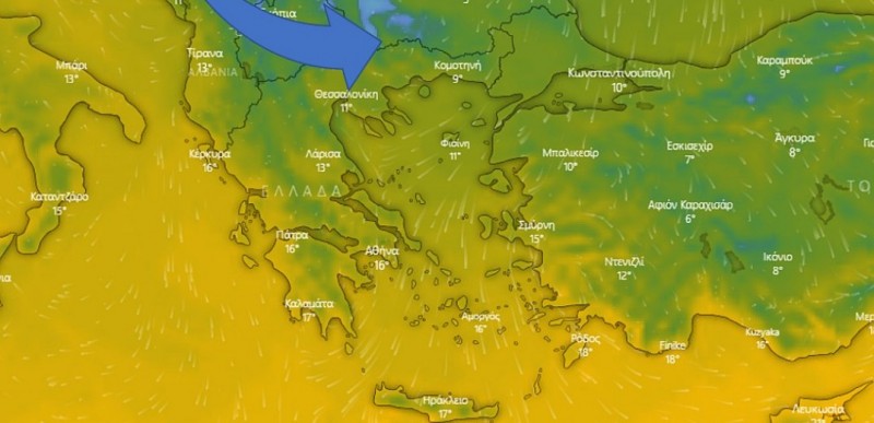 Ηλιοφάνεια στις περισσότερες περιοχές της χώρας, με αισθητή πτώση της θερμοκρασίας κυρίως στη βόρεια Ελλάδα της τάξης των 5-6 βαθμών, εξαιτίας αρκετά ψυχρής αέριας μάζας που κινείται από τη Βόρεια Ευρώπη προς τα Βαλκάνια. Στη δυτική Μακεδονία θα σημειωθεί τοπικά παγετός, με την ελάχιστη θερμοκρασία στους -3 βαθμούς. Στην ανατολική Μακεδονία, τη Θράκη και την περιοχή του Αιγαίου αναμένεται συννεφιά με λίγες τοπικές βροχές έως τις μεσημεριανές ώρες.