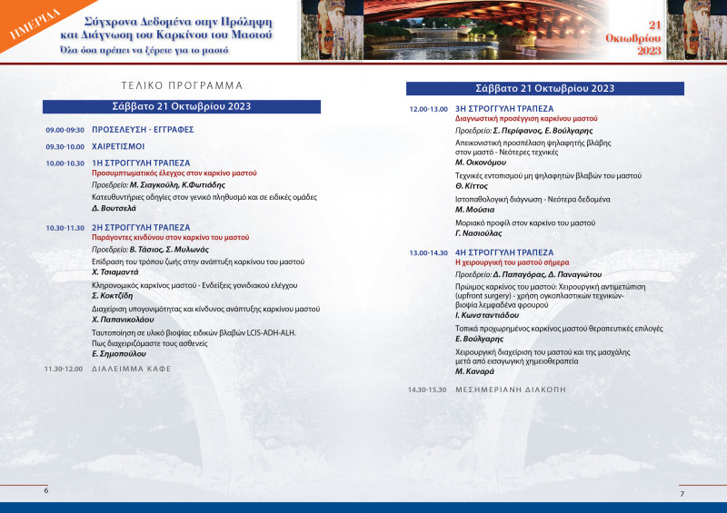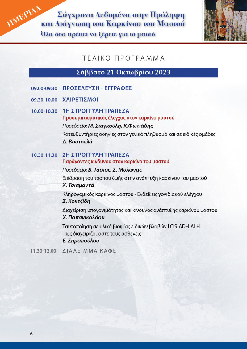 Βρισκόμαστε στην ευχάριστη θέση να σας ανακοινώσουμε ότι θα διεξαχθεί στα Τρίκαλα το Σάββατο 21 Οκτωβρίου 2023, Ημερίδα με θέμα «Σύγχρονα δεδομένα στην πρόληψη και διάγνωση του καρκίνου του μαστού-Όλα όσα πρέπει να ξέρετε για τον μαστό».