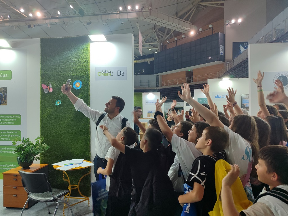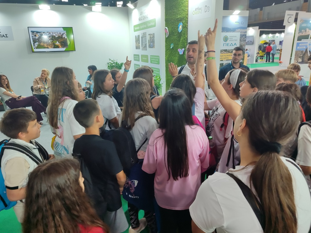 Έτσι οι μαθητές μας μαζί με μαθητές του 2ου και του 4ου Δ.Σ. Καλαμπάκας επισκέφθηκαν την Attica Green Expo. Εκεί μας περίμεναν οι αντιδήμαρχοι Αθλητισμού και Παιδείας και Πολιτισμού και Καθαριότητας, κ. Κωνσταντίνος Παπάντος και Νίκος Τσιούκας αντίστοιχα. Ένας συνοδός ανέλαβε την ξενάγησή μας και μας οδήγησε στον κάθε σταθμό όπου οι μαθητές και οι μαθήτριες έμαθαν για το περιβάλλον παίζοντας.