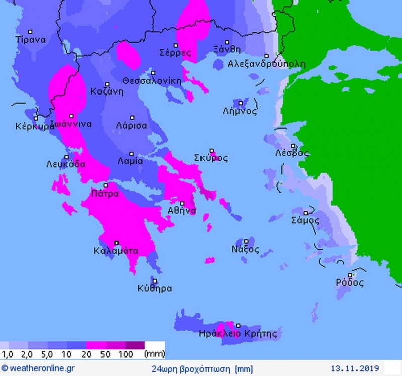 Στην Αττική, βροχές και καταιγίδες κατά διαστήματα ισχυρές, το βράδυ εξασθενούν. Άνεμοι Νοτιάδες 5-6 Μποφόρ και θερμοκρασία από 14 έως 21 βαθμούς.