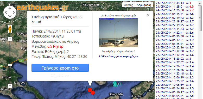 Απανωτές σεισμικές δονήσεις σημειώθηκαν πριν λίγη ώρα και συγκεκριμένα η πρώτη στις 12:25 μεγέθους 5.7 ρίχτερ, η 2η λίγα δευτερόλεπτα αργότερα κοντά στην Σαμοθράκη με μέγεθος 6,5 και η 3η στις 12:34 κοντά στην Χαλκιδική.