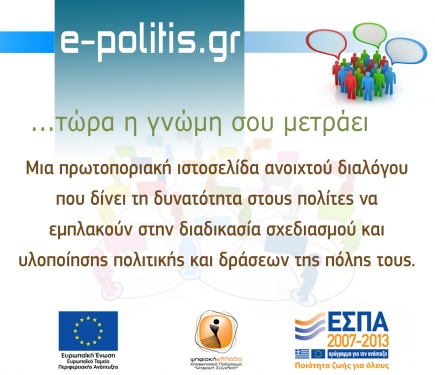 Ο e-politis είναι μια ηλεκτρονική πλατφόρμα, δηλαδή μια ιστοσελίδα, που εμπεριέχει άλλες 5 σελίδες. Στόχος του «ηλεκτρονικού πολίτη» είναι η αμφίδρομη ενίσχυση της διαφάνειας και την μεγιστοποίηση της κοινωνικής συμμετοχής μεταξύ των πολιτών και του Δήμου. Κάτι που ήδη έχει γίνει στον Δήμο Τρικκαίων, ο οποίος για πρώτη φορά στην Ελλάδα είχε εφαρμόσει μέσω του e-trikala, το πρόγραμμα e-dialogos, αλλά σε διαφορετική μορφή. Πλέον, η νέα εφαρμογή ενσωματώνει τις τεχνολογικές εξελίξεις και δημιουργεί το ηλεκτρονικό περιβάλλον για να μπορέσει ο κάθε χρήστης διαδικτύου, ακόμη και ο «τεχνολογικά αναλφάβητος», να πει τη γνώμη του και, κυρίως, να καθορίσει εξελίξεις.