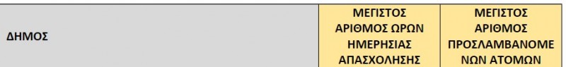 απασχόλησης ανά Δήμο, ο οποίος ισοδυναμεί με το μέγιστο αριθμό ατόμων ημερήσιας απασχόλησης τριών (3) ωρών που καταγράφεται στη δεύτερη στήλη και αποτελεί το μέγιστο επιτρεπόμενο αριθμό προσλαμβανόμενων ατόμων.