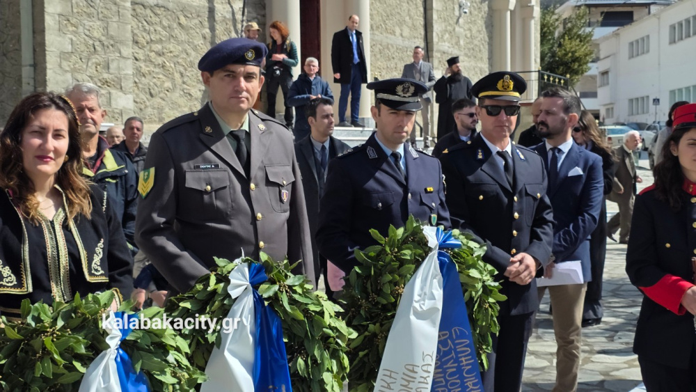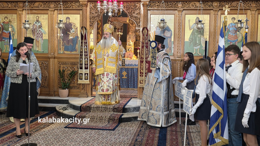 Καλαμπάκα 25η Μαρτίου: Τελέστηκε η δοξολογία στον Ιερό Μητροπολιτικό Ναό του Αγίου Βησσαρίωνος και η κατάθεση στεφάνων