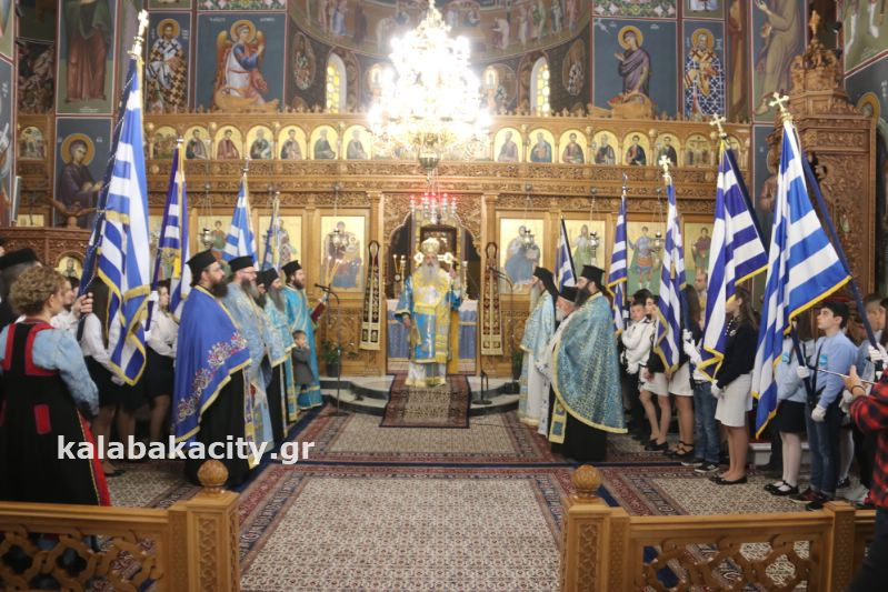 πίσημη Δοξολογία τελέστηκε σήμερα το πρωί στον Μητροπολιτικό Ναό του Αγίου Βησσαρίωνα, χοροστατούντος του Μητροπολίτη Σταγών και Μετεώρων κ.κ. Θεοκλήτου, παρουσία των τοπικών πολιτικών , στρατιωτικών και άλλων αρχών, σχολικών μονάδων και κατοίκων της πόλης.