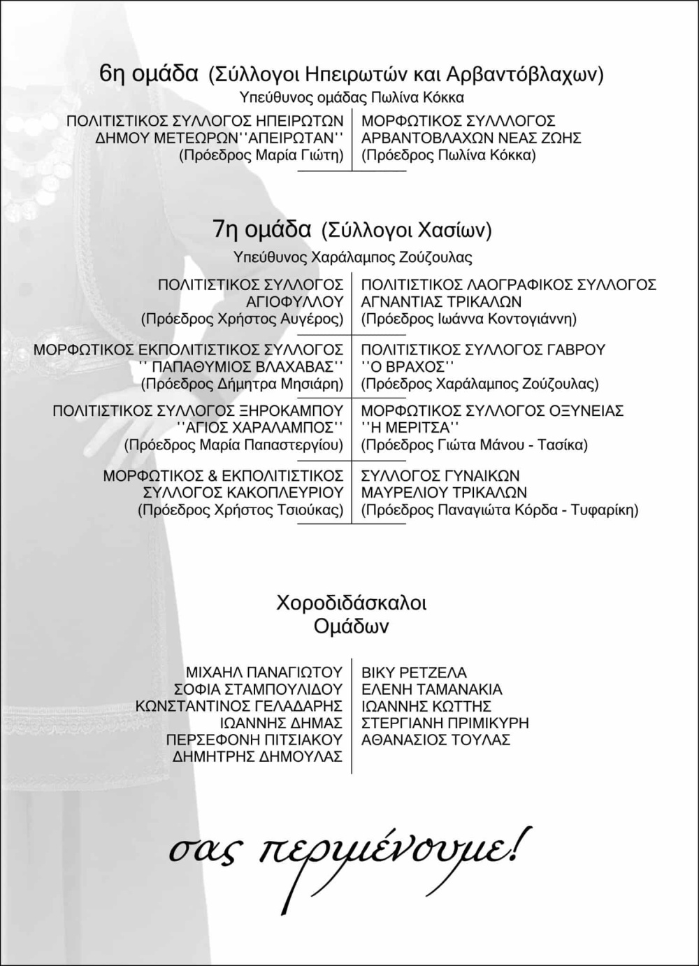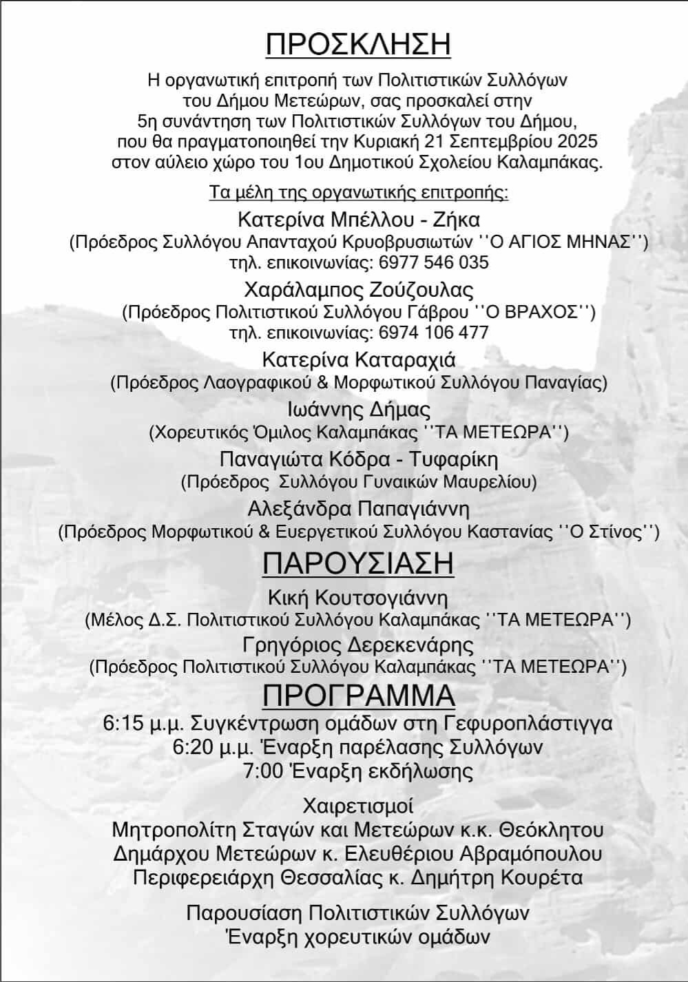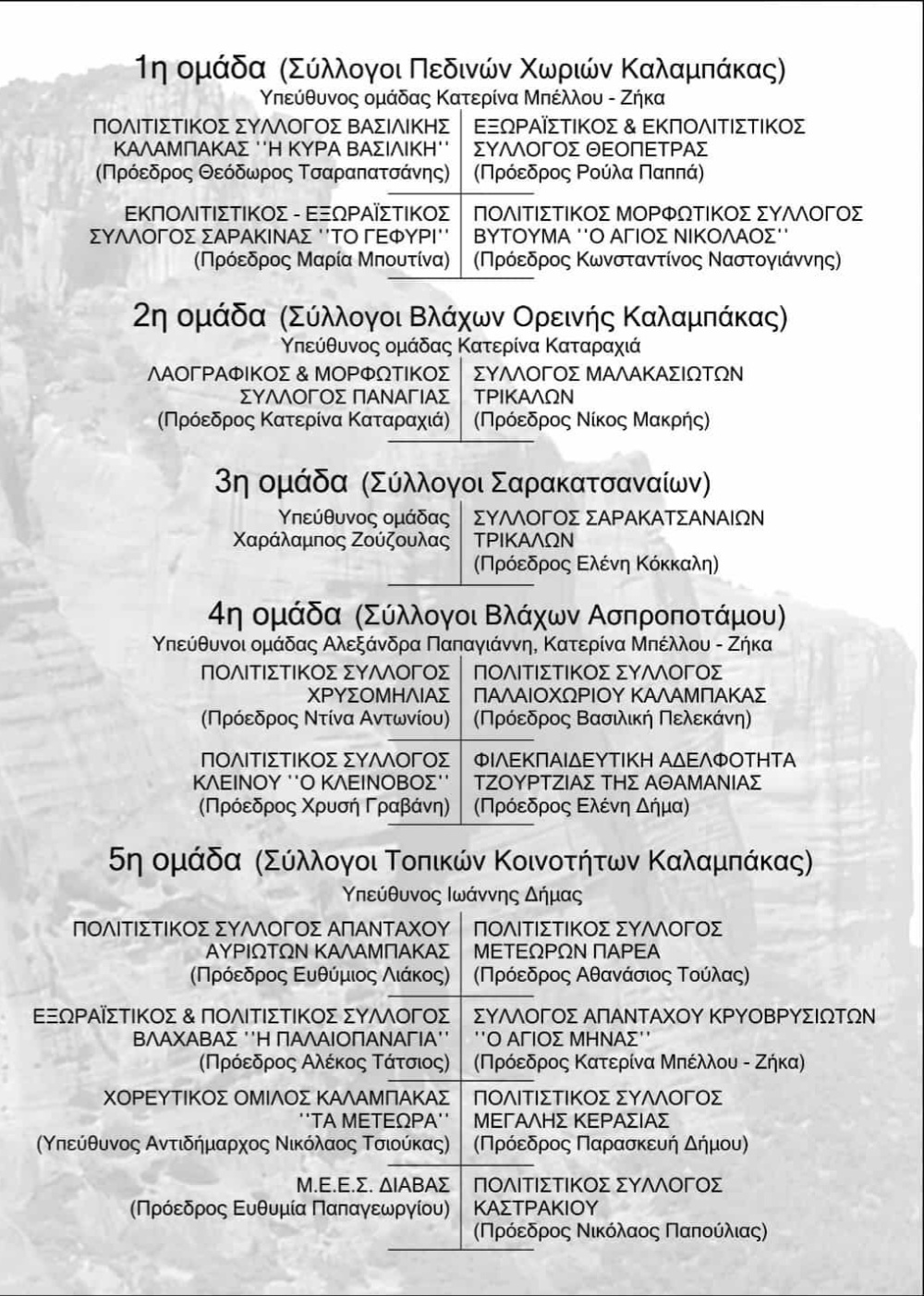 Η οργανωτική επιτροπή των Πολιτιστικών Συλλόγων του Δήμου Μετεώρων, σας