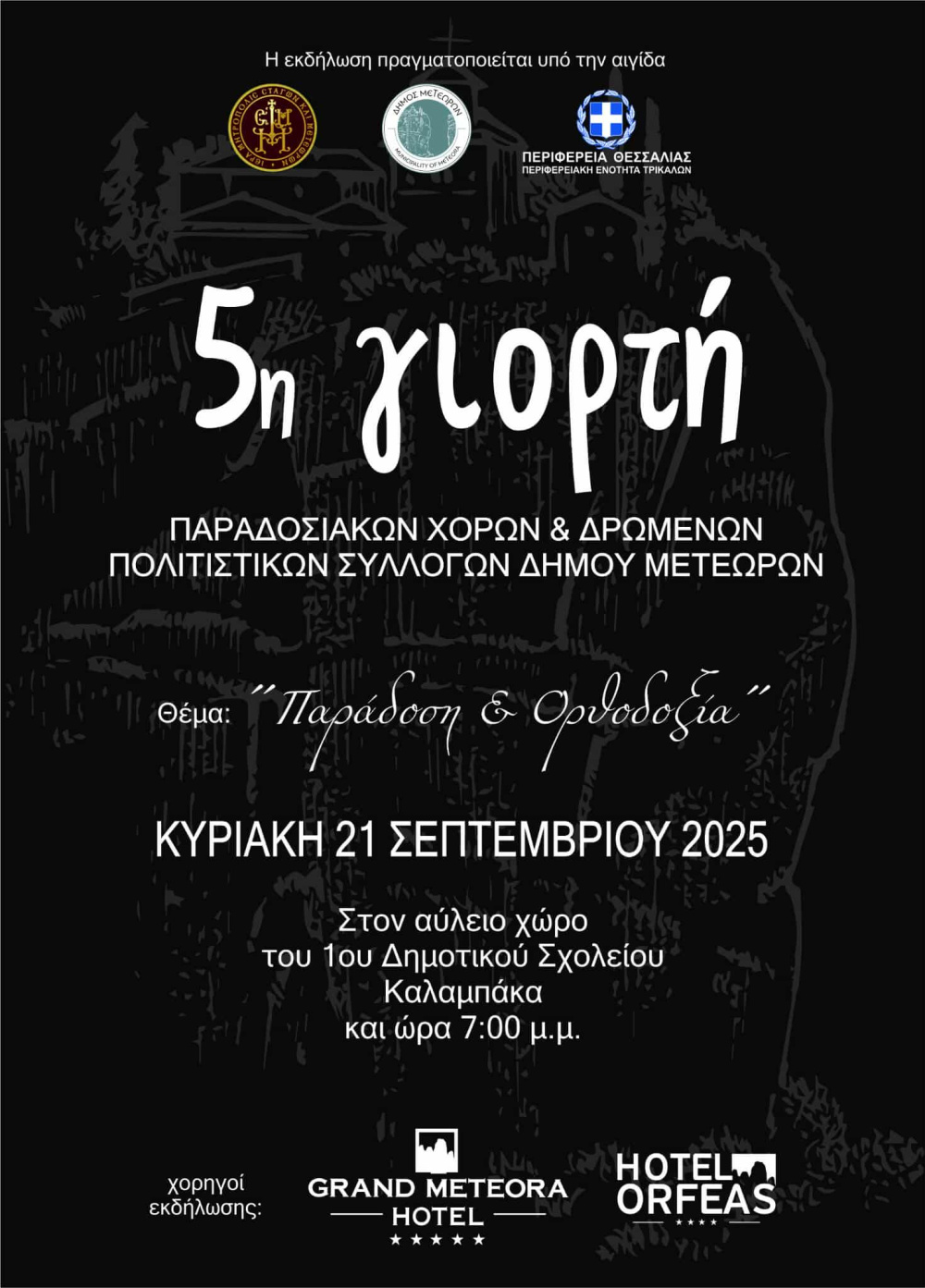 πραγματοποιηθεί την Κυριακή 21 Σεπτεμβρίου 2025 στον αύλειο χώρο του 1ου Δημοτικού Σχολείου Καλαμπάκας.
