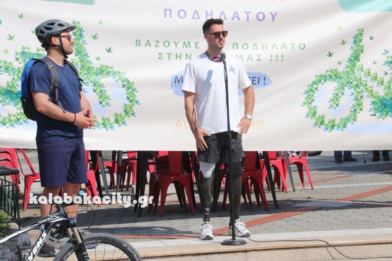 Σχετικό χαιρετισμό και για την σημασία του ποδηλάτου μίλησε ο Γιάννης Πελίδης, ο οποίος σε ηλικία μόλις 20 ετών υπέστη ακρωτηριασμό των δύο κάτω άκρων εξαιτίας τροχαίου ατυχήματος.
