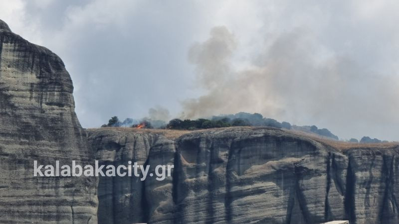 Φωτιά ξέσπασε σήμερα το μεσημερι σε θάμνους που βρίσκονται σε βράχο των Μετεώρων με το θέαμα να είναι απίστευτο σε ολους.