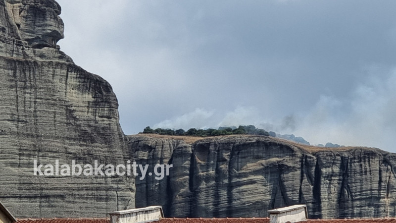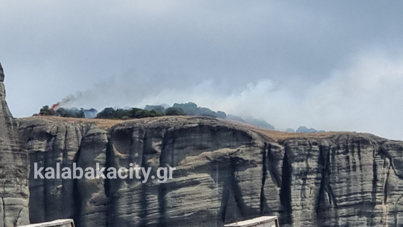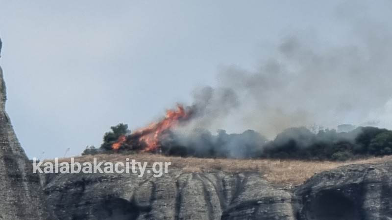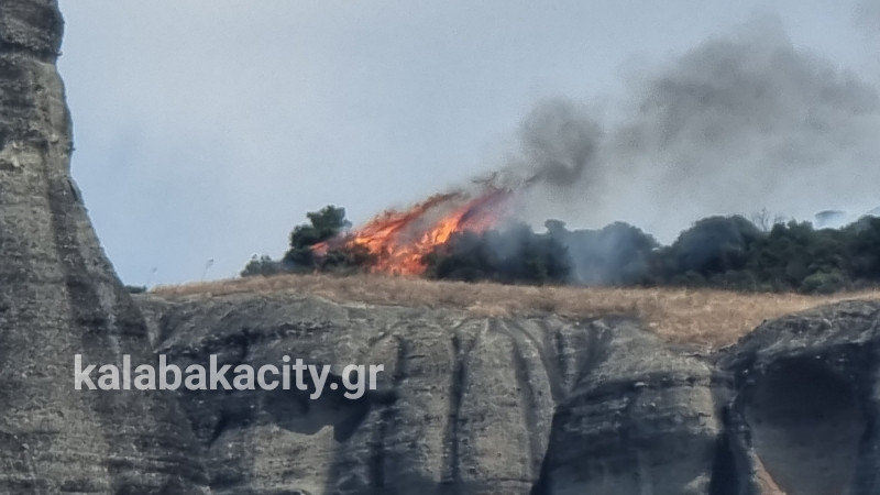 Φωτιά ξέσπασε σήμερα το μεσημερι σε θάμνους που βρίσκονται σε βράχο των Μετεώρων με το θέαμα να είναι απίστευτο σε ολους.