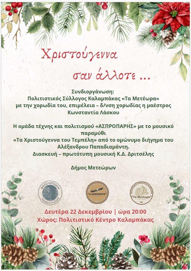 Καλαμπάκα: Απόψε η εκδήλωση με θέμα ” Χριστούγεννα σαν άλλοτε…”
