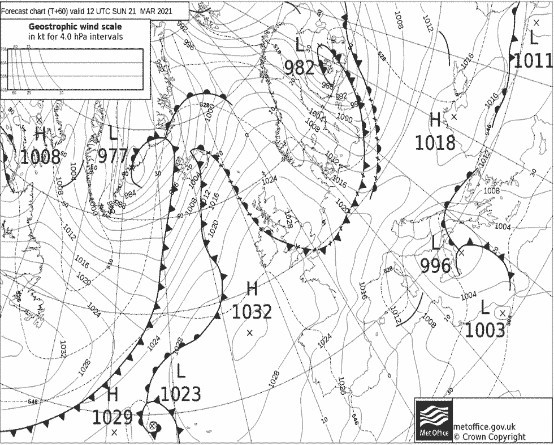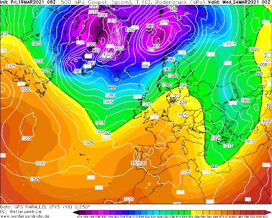 Μέχρι όμως την Τρίτη ο καιρός  το Σάββατο   20 Μαρτίου και Κυριακή 21 Μαρτίου θα παρουσιάσει επιδείνωση καθώς βαθύ και καλά οργανωμένο βαρομετρικό χαμηλό που το βλέπουμε στον παρακάτω χάρτη επιφανείας