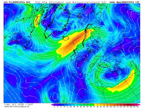 Στον παρακάτω χάρτη βλέπουμε τους ανέμους την ημέρα των Χριστουγέννων στα 1500 μέτρα περίπου.